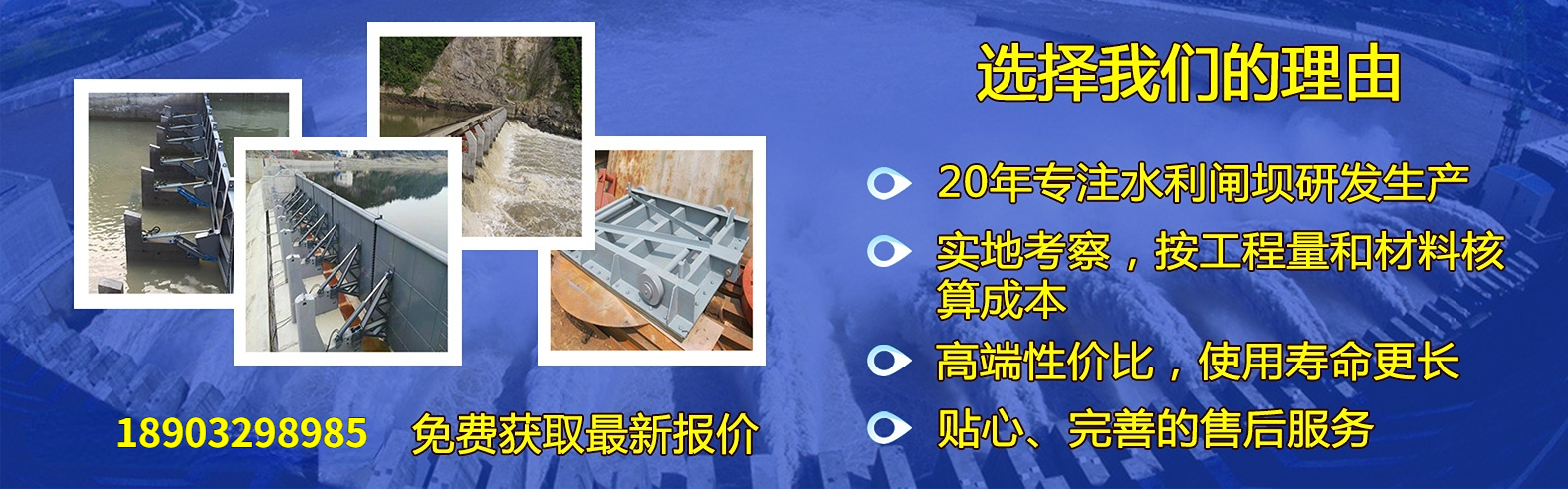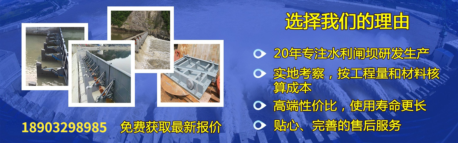 鋼壩 液壓壩 翻板閘門 液壓啟閉機 格柵除污機 抓斗清污機 液壓沖洗門 拍門 水利鋼閘門 鑄鐵閘門 液動下開堰門 旋轉堰門 合頁壩系列 螺桿 卷揚啟閉機 船閘人字門 一字門 閘閥 球閥 浮筒閥
