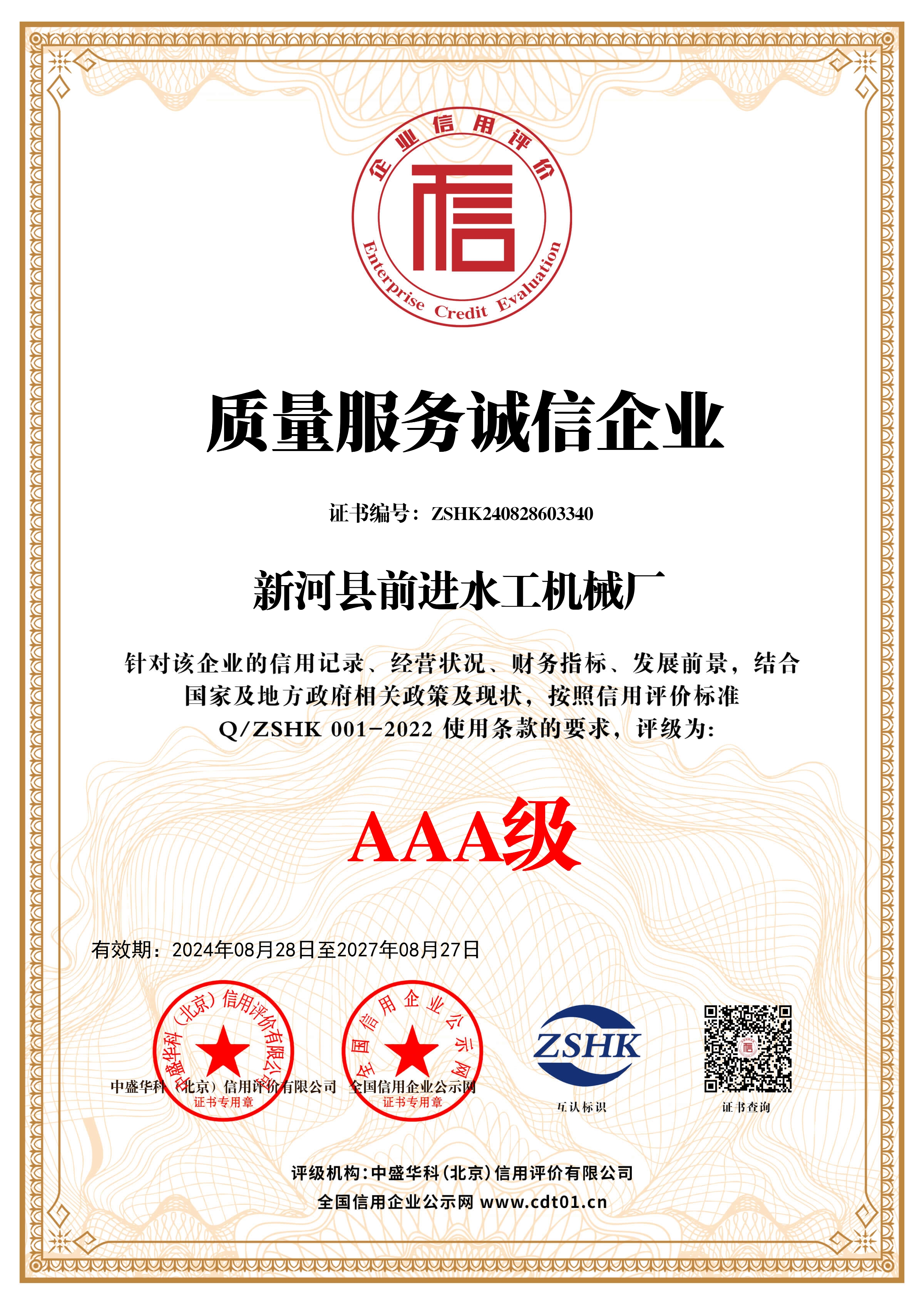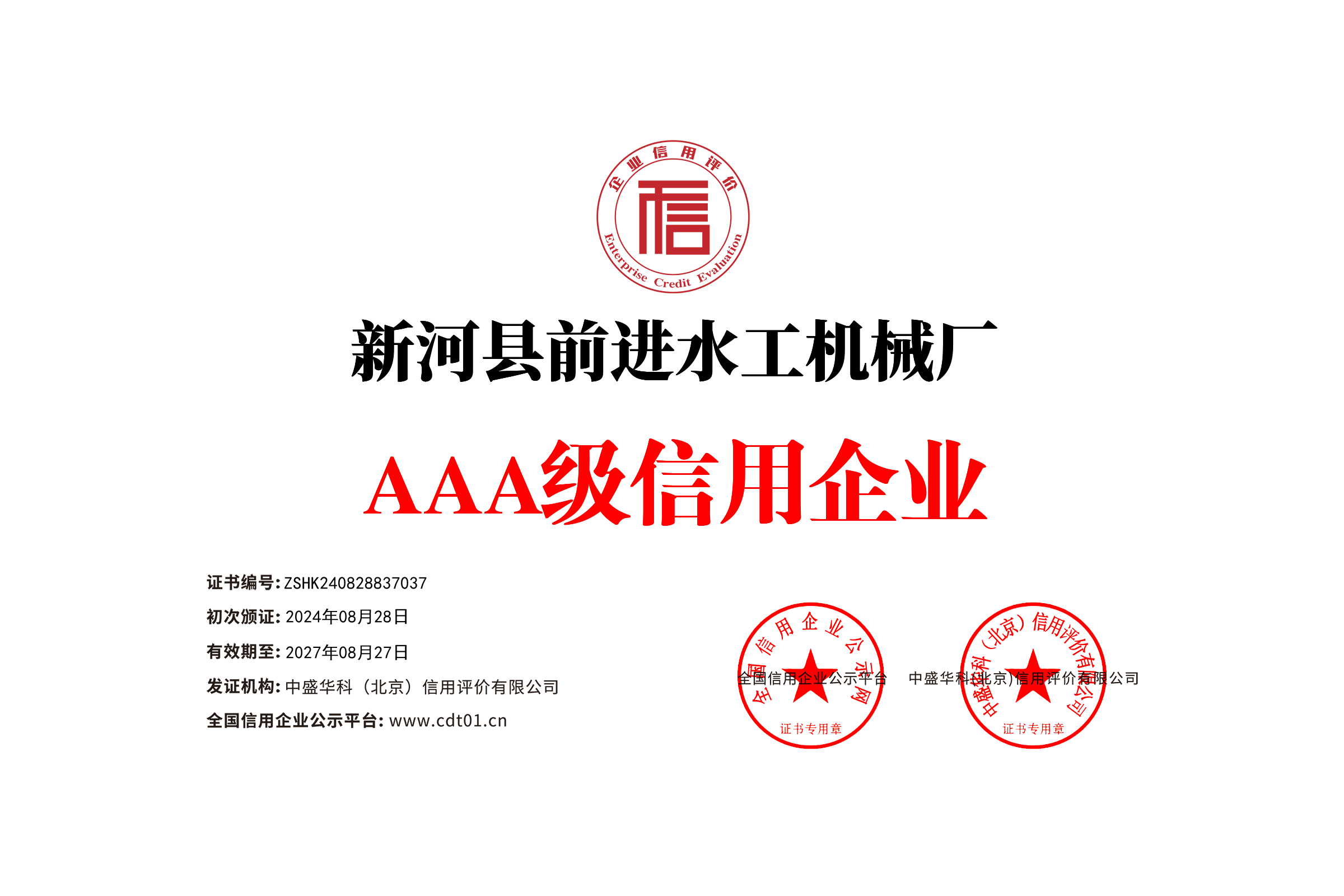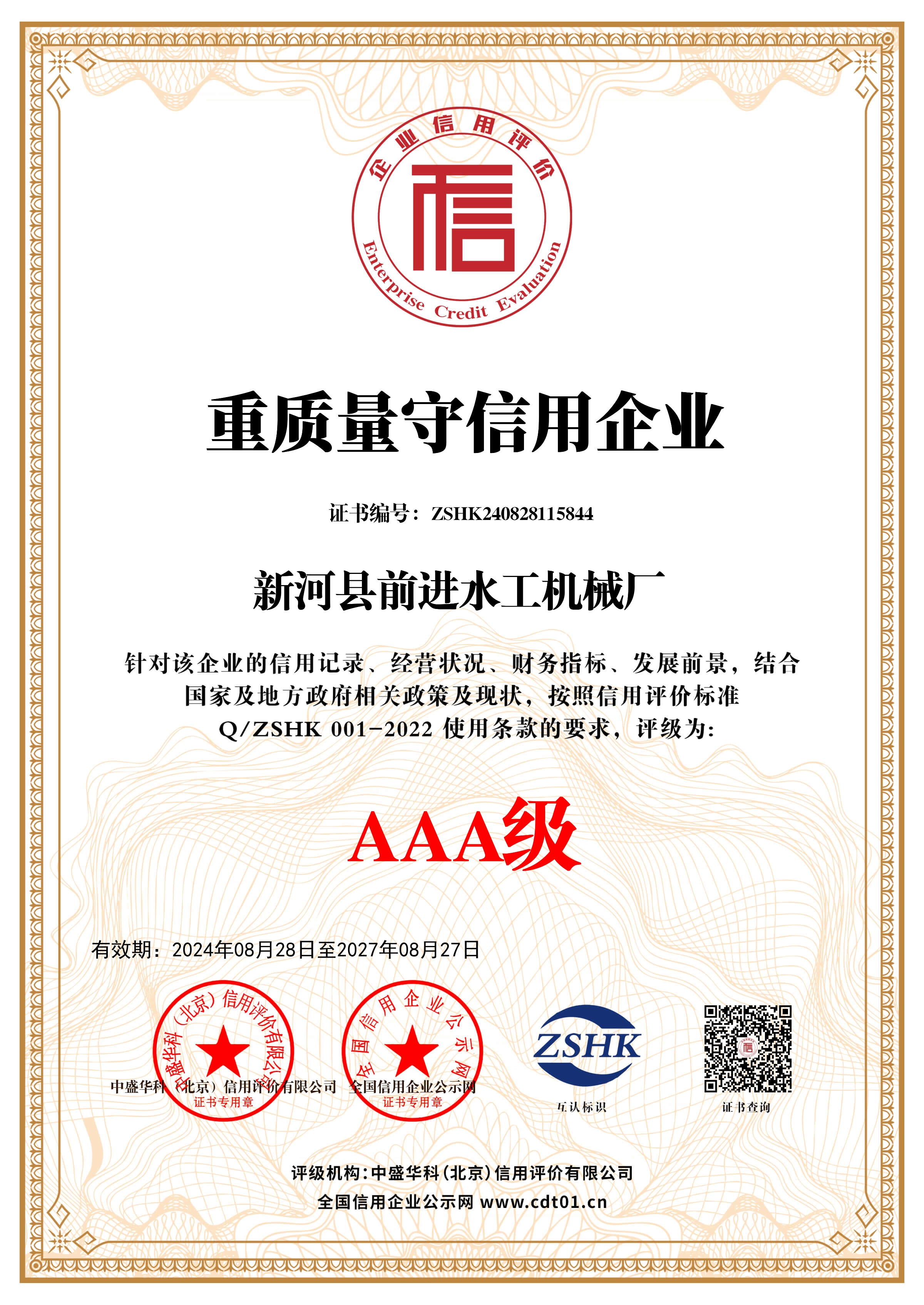 企業(yè)信用等級證書